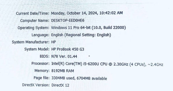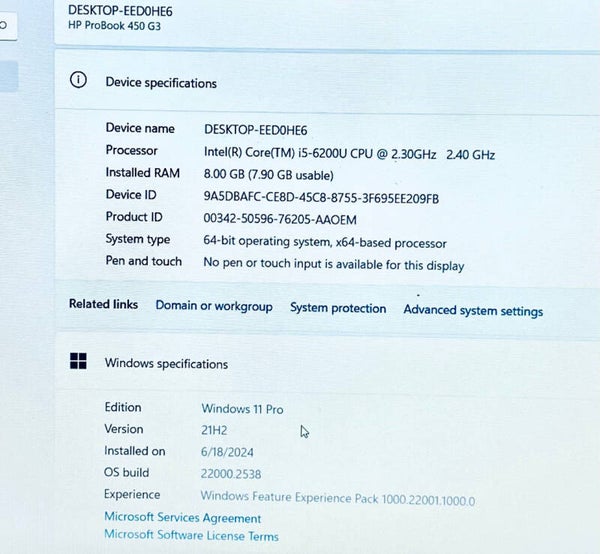 HP ProBook 15” 450 G3 i5-6200u 2.4Ghz 8GB 120 SSD + 150GB HDD Windows 11 Radeon R7 M340 2GB VRAM Graphics